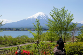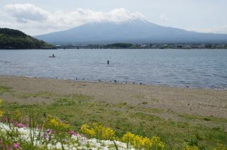 河口湖畔の大石公園にて。
