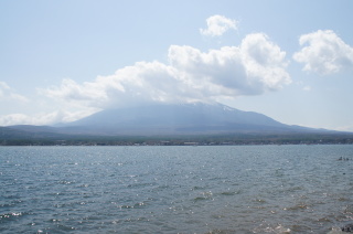 精進湖にて。