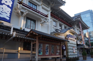 歌舞伎座前にて。 今、海老蔵さんが舞台やってるよね。
