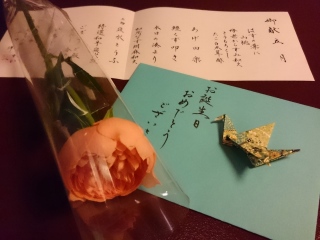今日のおしながき。 デザートの後にいただいた、写真&お花。