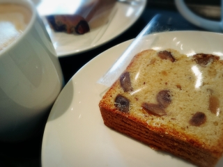 スタバでお茶。 マロンのパウンドケーキ。