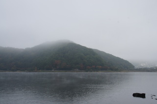 着いた時は、こんな感じで靄がかかってた・・・ 湖面には、蒸気霧。