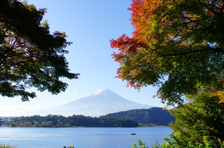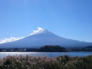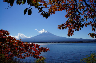 河口湖畔の公園にて。 ここは、キレイに色づいてるね。 でも、外国人観光客ばっかり・・・