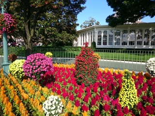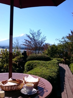 サイクリング途中の、富士ビューホテルのお庭。 少し色づいてるね。
