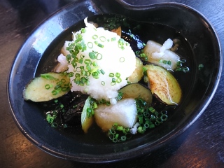 『川上庵』にて。 なすとお餅の揚げだし。 ぐりパパ、揚げだしが好きなんよね。 ぐり、頑張って揚げだし豆腐作るけど、まぁまぁ面倒なんよね。