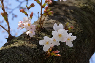 いつもの橋から・・・ 陽当たりのいい木は、たくさん咲いてるね。