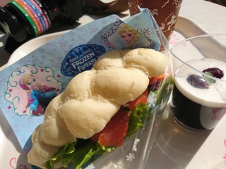 今日のランチ。 エルサの髪型に似せた、パンなのかなぁ。