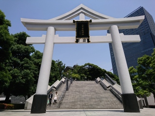 厄除けのお守りをいただきに、日枝神社へ。 白い鳥居って、珍しいね。