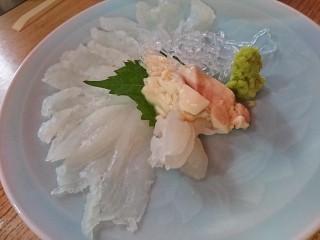 『神楽寿司』 かわはぎのお造り&亀の手。 めちゃくちゃ、グロテスク・・・