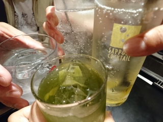 もんじゃ焼『ことぶきや』にて。 かんぱい!