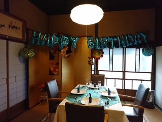 本日のお宿。 先輩(夫)がおたんじょうびなので、かわいくデコレーションされてた。