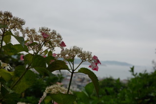 御霊神社の境内から、紫陽花&江ノ電を。