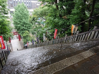 今回は、この『出世の石段』をのぼらず、くだらず。 雨が降っていたのと、レインブーツだったので、滑ったらコワいし。
