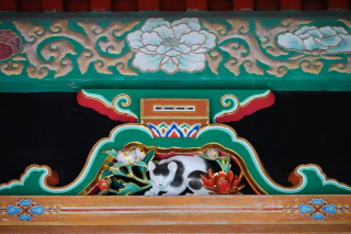 日光東照宮。 眠り猫の裏には、スズメが・・・