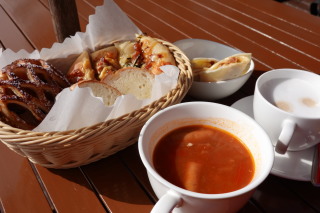 『Lake Bake』にて。 晴れてはいたけれど、富士山見えず・・・ 〜と思ったら、帰る頃、ちらっと見えたよ。