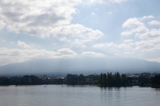 サイクリングも終盤。 河口湖大橋からの富士山。 ギリギリ見えたよ。