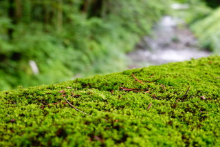 欄干の上のコケ。 雨上がりだから、キレイ。