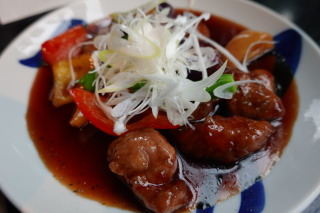 『酢重』にて。 ぐりは、彩り野菜と豚の黒酢炒め。 ぐりパパは、酢重風 鉄板カツ。 美味しかった(*^-^*)