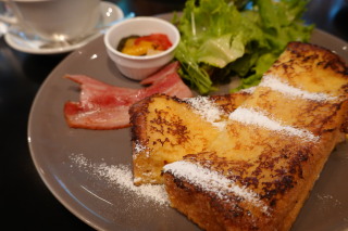 『SAWAMURA』にて。 ぐりの、フレンチトースト。 ぐりパパの、ベーコンエッグプレート。