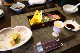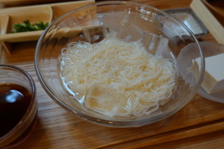 『とらや工房』にて。 季節限定の軽食。 小豆島のそうめん。 富士山の伏流水で作られた御殿場豆腐を、西伊豆戸田産の 天然塩で。