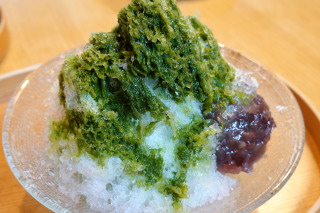 『とらや工房』にて。 ぐりパパの、かき氷(抹茶蜜) ぐりの、葛まんじゅう。 どちらも、季節限定のモノ。