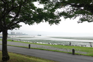 諏訪湖も晴れていたらキレイなのになぁ。