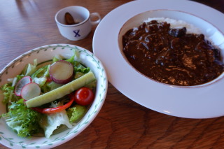 『蓼科コース』 牛フィレ肉のポワレ 緑胡椒ソース りんごパイ 他に、サラダ、パン、コーヒーも。