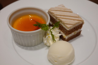 『白樺コース』 かぼちゃのプリン プルミエモンブラン 他に、サラダ、パン、ドリンクのコース料理だったよ。