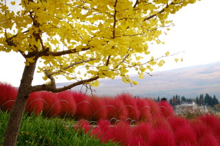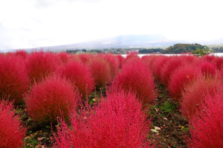お宿を出て、河口湖方面へ。 コキアが見頃かなぁ〜と来てみたけれど・・・ 富士山は見えず。