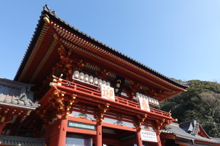 鶴岡八幡宮へ。 めちゃくちゃいいお天気。 青空に朱色が映えるね。