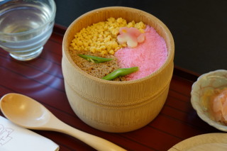 『八十小路』でお茶。 ぐりパパは、そぼろごはん。 ぐりは、おしるこ。
