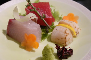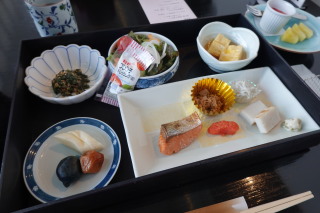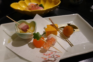 煮物、食事は、にぎり寿司だったよ。 他に、蛤進上の椀物、デザートも。