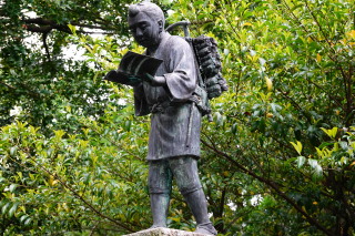 報徳二宮神社にて。 境内には、御祭神の二宮尊徳翁の像が。