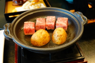 お宿の晩ごはん せっかくなので、アラカルトを一品だけオーダー。 サイコロステーキ