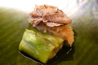 トロ茄子と毛ガニと白味噌のソース〜トリュフ添え