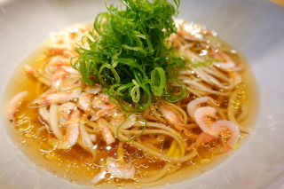 桜海老とトリュフオイルのお蕎麦