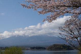 富士・河口湖さくら祭りが開催されている、河口湖へ。 着いてすぐの頃は、富士山に少しだけ雲がかかってたけど・・・