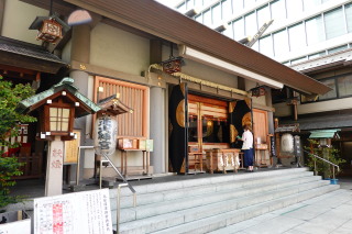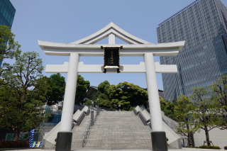 大門にある芝大神宮。 鳥居の奥に、東京タワーの先端部分が見えたよ。
