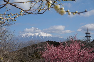 富士山と梅の花のコラボ。 いい感じ〜(*^-^*)
