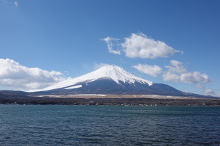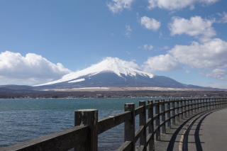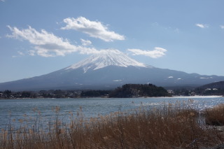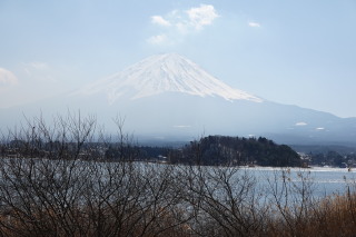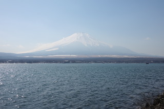 いいお天気だったし、河口湖畔まで。 富士山の全景は見えるけれど、何だか、微妙。