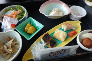 焼鯖、だし巻き卵、籠清の蒲鉾、伊豆の山葵漬 明太子、釜揚げシラス サラダ、箱根豆富、きんぴらごぼうetc・・・