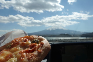 河口湖畔へ。 『レイクベイク』のパンを調達し、愛車の中で富士山を眺めながら 食べたよ(*^-^*)