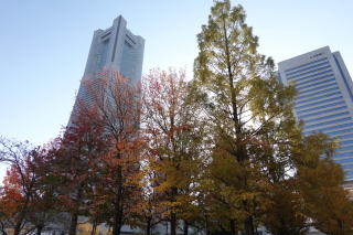 ランドマークタワーと紅葉。